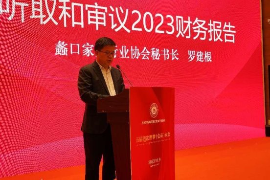 蠡口家具行业协会秘书长罗建根,作财务收支情况报告,对协会2023年财务收支情况进行汇报说明。
