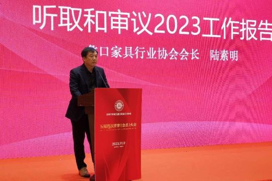 蠡口家具行业协会会长陆素明,作协会2023工作总结报告,自蠡口家协五届三次理事(会员)大会以来,认真贯彻落实党的二十大精神,在相城高新区(元和街道)党工委、管委会和有关部门的关心指导下,围绕“一节一展一会”等全年规划,部署相关工作,谈及2024年协会工作规划部署时,蠡口家协也会为高水平打造品牌展会,高标准推动转型升级,高质量建设产业集群,为“买家具到蠡口”这一地域品牌注入新的时代内涵而作出新的贡献!