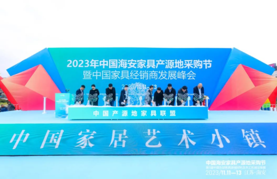 11月11日,2023年中国海安家具产源地采购节在江苏海安盛大开幕。开幕式上,中国产源地家具联盟正式成立!世界家具联合会主席、亚洲家具联合会会长、中国家具协会理事长徐祥楠,世界家具联合会秘书长、亚洲家具联合会副会长兼秘书长、中国家具协会副理事长兼秘书长屠祺,中国林业科学研究院林业科技信息研究所林产品市场与贸易研究室副主任、全球林产品绿色供应链倡议秘书处秘书长罗信坚,江苏省现代服务业联合会会长赵芝明,江苏省家具协会执行会长冯建华,海安市委书记于立忠,市委副书记、市长谭真,市人大常委会主任张亚曦,市政协主席李春旺等领导共同见证了这一家具产业发展的历史性时刻。