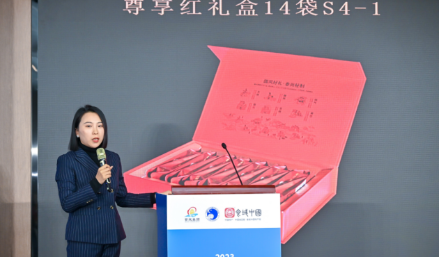 山东泰尚黄精生物科技有限公司培训总监赵立娟进行了《高端中国礼 泰尚黄精丝》的主题推介,她介绍到山东泰山黄精生物科技有限公司,是一家大型国有控股企业,是泰安市政府发展免疫力经济大健康产业的头部企业,是全国首家泰山黄精全产业链创新发展智慧化企业、中国中医药信息学会药食同源分会理事长单位、中国黄精产业化协同创新平台发起单位、中国产学研合作创新示范基地、山东省经济林协会黄精分会会长单位、山东省省级产业化联合体、省级扶贫龙头企业、泰山黄精“国家地理标志商标授权使用单位”,并为与会嘉宾分享了泰尚黄精对人体的重要调节作用。
