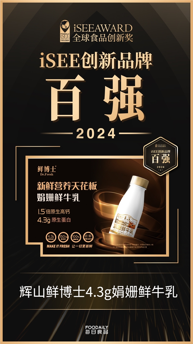 iSEE全球奖作为食品饮料行业的权威领先奖项,一直以“彰显食品创新精神,让好的产品被更多人看见”为使命,倡导“全球标准+第三方专业评审+非商业化”的评选标准,发现、表彰、传播全球“创新”与“美味”标杆,赋能食品产业创新发展。凭借优秀的产品品质和独特的创新理念,辉山牛奶旗下产品多炫冰淇淋酸奶和鲜博士4.3g娟姗鲜牛乳,从一众海内外创新品牌中脱颖而出,成功跻身iSEE创新品牌百强行列,并晋级iSEE全球食品创新奖终审。