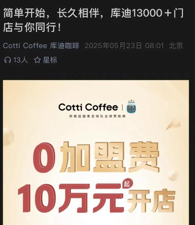 库迪咖啡创立于2022年,是由瑞幸咖啡创始人陆正耀携瑞幸原核心团队打造的咖啡品牌。成立至今不到三年,库迪咖啡一路狂飙,据官方公众号显示,截至今年5月23日其门店数已达1.3万家。