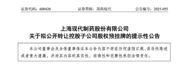 近日,国药现代发布公告,拟转让其持有的上海现代哈森(商丘)药业51%股权,将在上海联合产权交易所预挂牌。转让底价将在正式挂牌转让前,以资产评估机构出具的评估结果为依据确定。