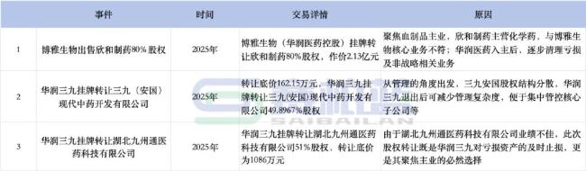 “华润系”的华润博雅生物三度下调江西博雅欣和80%股权挂牌价格,主要是为了聚焦血液制品发展;华润三九多次出售旗下盈利表现不佳的子公司,聚焦主业发展。