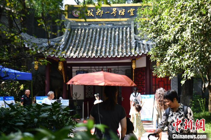 资料图:立秋后的成都持续高温天气,位于成都人民公园内的防空洞吸引不少市民、游客前来纳凉。中新社记者 张浪 摄