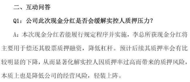 分红就是为了帮李卫国还融资,降杠杆。