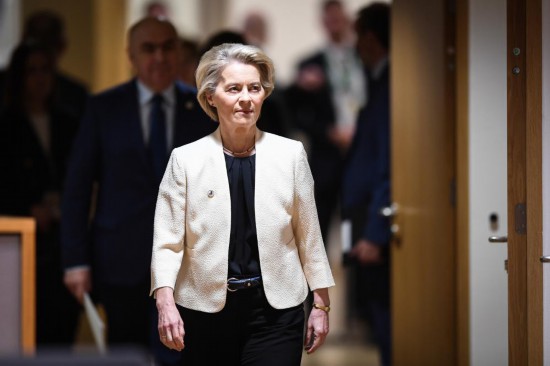 3月6日,在比利时布鲁塞尔,欧盟委员会主席冯德莱恩在欧盟特别峰会上。新华社记者 彭子洋 摄
