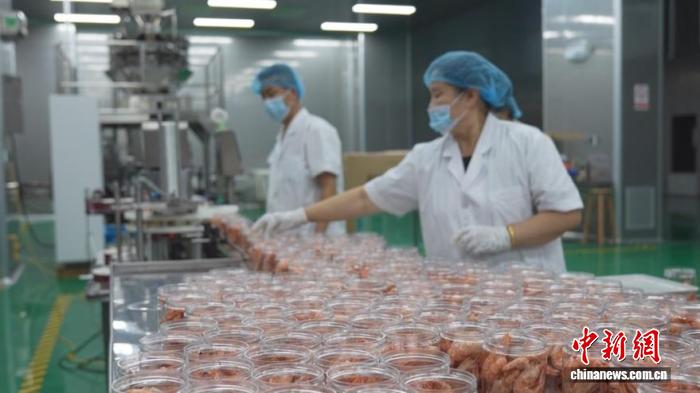 走进温州金海岸食品公司的无菌厂房里,只见活蹦乱跳的鲜虾先被冰水刷去海水咸味,再用低温急冻凝住原始鲜甜,最后低温慢烤,短短五分钟,虾身变得绯红,虾香四溢。据悉,2024年,这条虾干产线创造出了超600万元的销售额。