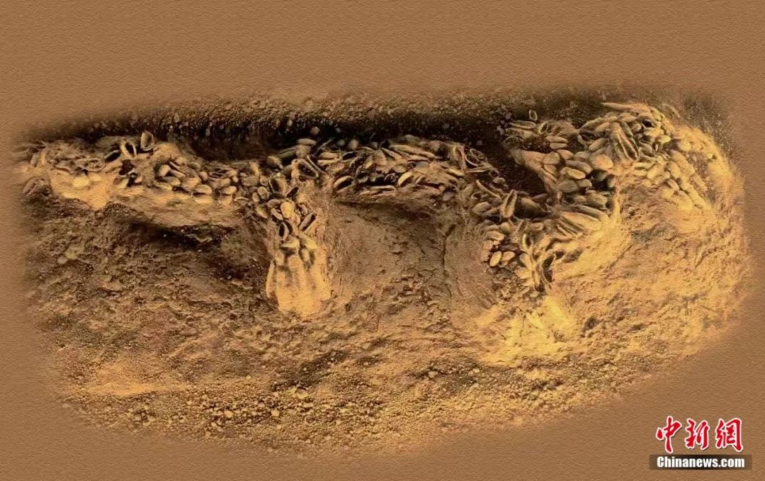 1987年,濮阳出土的蚌塑龙形图案。濮阳市委宣传部供图