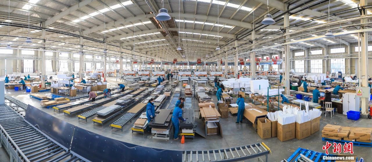 全友家私清丰有限公司智能化生产线工人正在生产家具。清丰县委宣传部供图