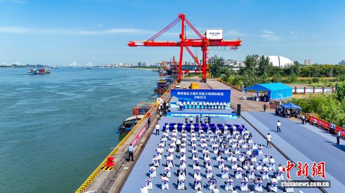 湖北荆州港盐卡港区直航日韩国际航线首航