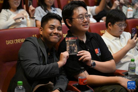 8月24日,在马来西亚吉隆坡,观众在《南京照相馆》马来西亚首映礼上展示电影票。新华社记者 程一恒 摄