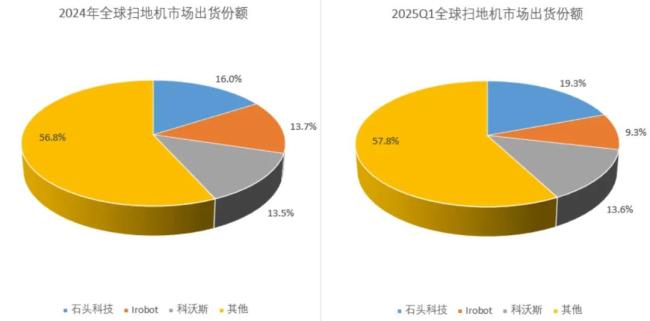 而若放眼海外市场,2024年,石头科技便以16.0%的出货量份额位居全球第一,2025年一季度进一步提升至19.3%,全球龙头的位置越坐越稳。