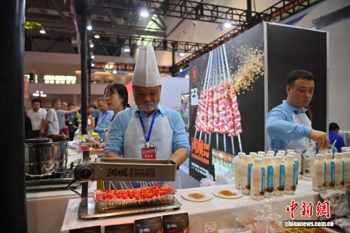 9月5日,观众在展会品尝烧烤。张瑶 摄