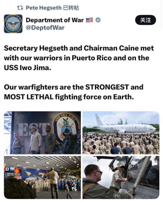 新华社北京9月9日电 美国国防部长赫格塞思8日抵达地处加勒比海的美国海外领地波多黎各进行访问。此访正值美国以“扫毒”为名持续加强在委内瑞拉附近加勒比海域军事存在之际。