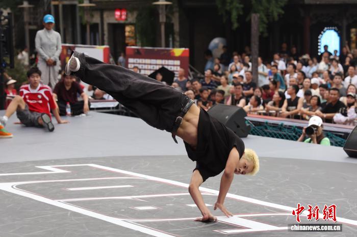9月14日,2025年中国街舞联赛(南京站)圆满收官,来自全国各地的近400名舞者轮番登台,舞动青春。最终,历经资格赛、循环赛、淘汰赛的层层筛选,王羽凡获得女子公开组冠军,李后桦获得男子公开组冠军。图为选手在舞台上展示舞技。中新社记者 泱波 摄