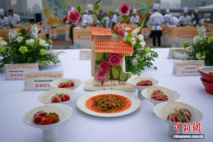9月27日,一场精彩的厨艺技能大赛在四川眉山市东坡区太和公园星光湾举行。专业与业余选手同台竞技,为现场民众及游客呈现了一场兼具视觉与味觉的美食品鉴盛宴。图为参赛菜品“东坡肉”(中)和“鱼香肉丝”。中新社记者 刘忠俊 摄
