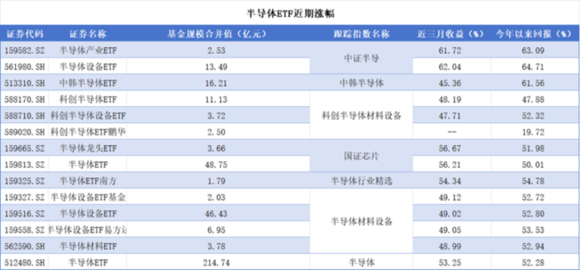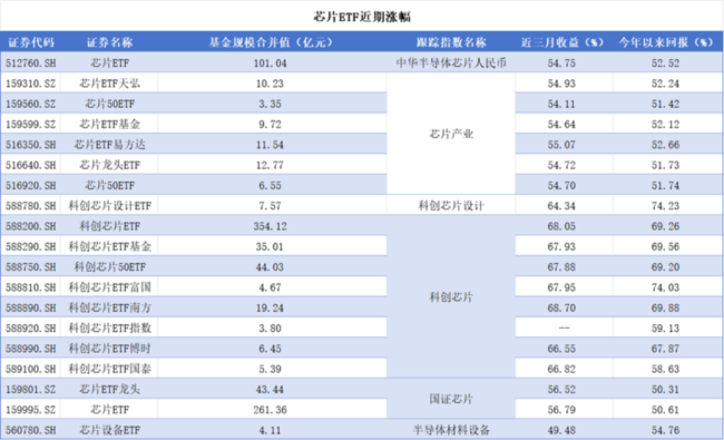 芯片ETF、半导体ETF近一季度双双暴涨