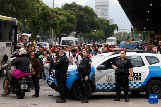 10月28日,巴西警方在里约热内卢展开针对黑帮“红色司令部”的大规模剿匪行动,警察在街头维持秩序。新华社/巴西通讯社