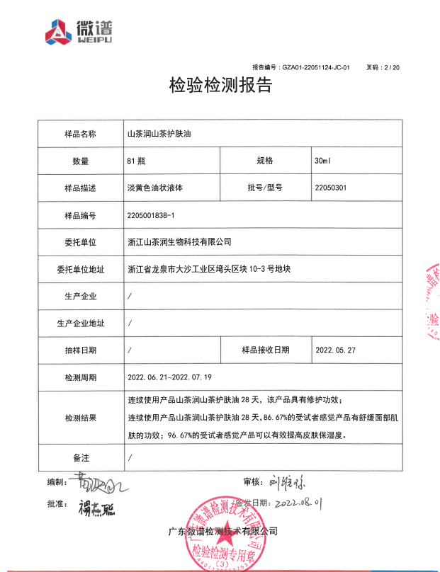 山茶润山茶护肤油通过严格人体试用试验,未出现皮肤不良反应,安全表现令人放心。同时,产品拥有原料有机认证、HACCP出口备案等多重资质,并与太平洋保险构建质量保障体系,让消费者使用更安心。此外,山茶润山茶护肤油不仅依托公司参与编制的《化妆品用原料油茶籽油》团体标准,更通过从原料筛选、采摘处理,到生产质检的全链路管理,确保每一瓶产品都经得起考验。