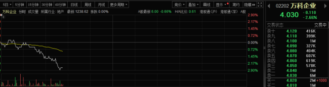 今日早盘,万科债普遍下跌,“21万科04”跌超20%盘中临停,“21万科06”和“23万科01”跌超12%,“21万科02”跌超7%。万科境内债“22万科02”跌幅达到20%,临时停牌。随后H股——万科企业股价开始跳水,而A股——万科A表现相对稳健。