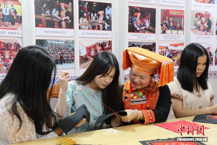 中新网来宾10月17日电(韦慧兰陈秋霞)在广西来宾市金秀瑶族自治县非遗代表性传承人赵凤香的工作室里,越南留学生阮翠红将瑶族刺绣纹样上传至人工智能(AI)平台,输入“传统纹样+现代服饰”指令。仅1分钟,融合传统与现