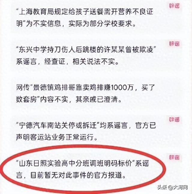 近日,一则关于山东日照实验高中分班调班明码标价的消息在某短视频平台上流传。对此,校方和当地教育部门均表示该消息不实。目前学校实行“阳光分班”,整个过程公开透明,家长、老师等各方代表都会到场监督,由系统随机分班