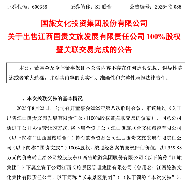 国旅文化投资集团股份有限公司(下称“ST联合”)一边高调并购江西润田实业股份有限公司(简称“润田实业”),另一边也在加快剥离旅游营销相关业务。