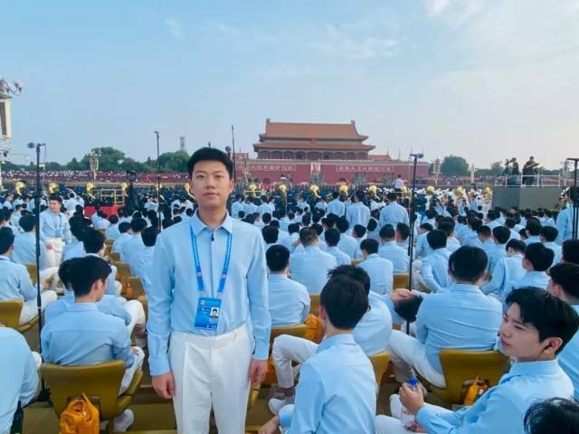 9月3日上午,纪念中国人民抗日战争暨世界反法西斯战争胜利80周年大会在北京天安门广场举行。来自中央戏剧学院的顺德伦教中学2024届优秀毕业生许嘉晋作为广场合唱团成员,参与了这一历史性时刻的暖场演出